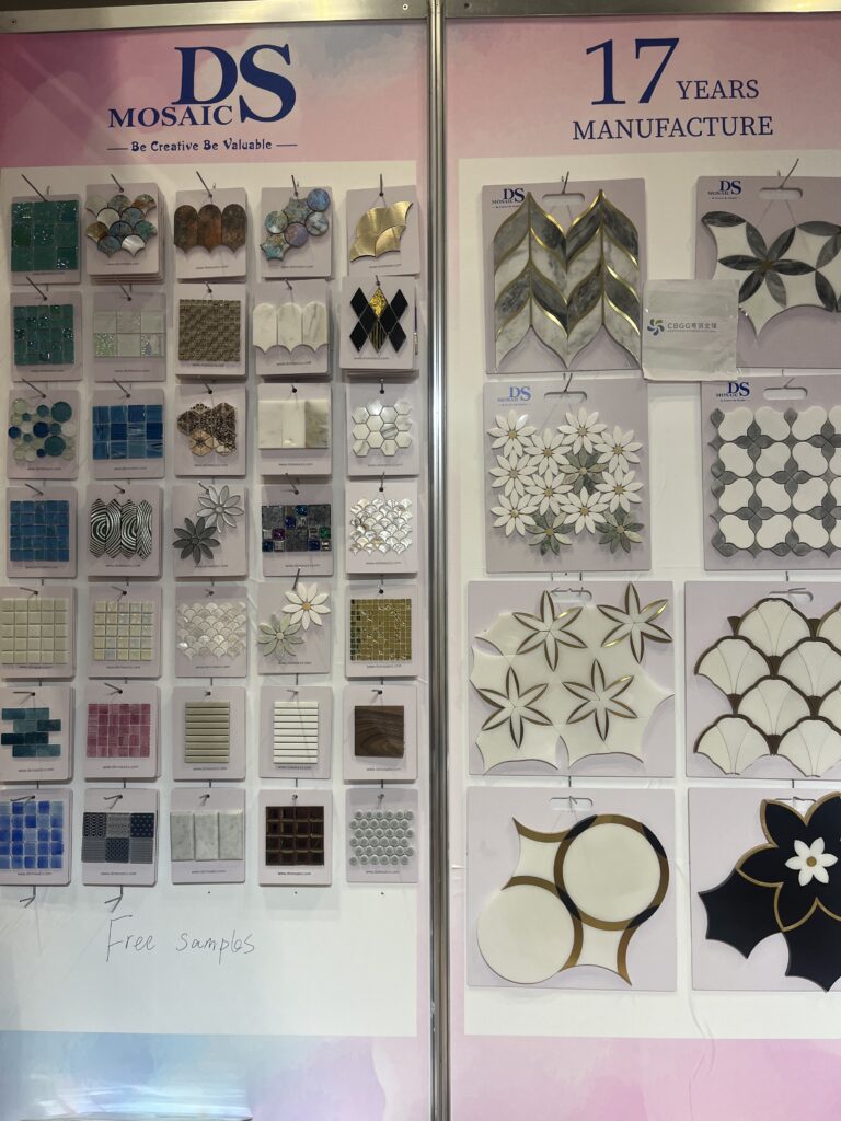 Exquisite marble mosaic tiles were a highlight, showcasing DS Mosaic’s strength in combining natural materials with intricate design. Popular among architects and luxury designers, these tiles are ideal for bathrooms, entrances, and high-end interiors.